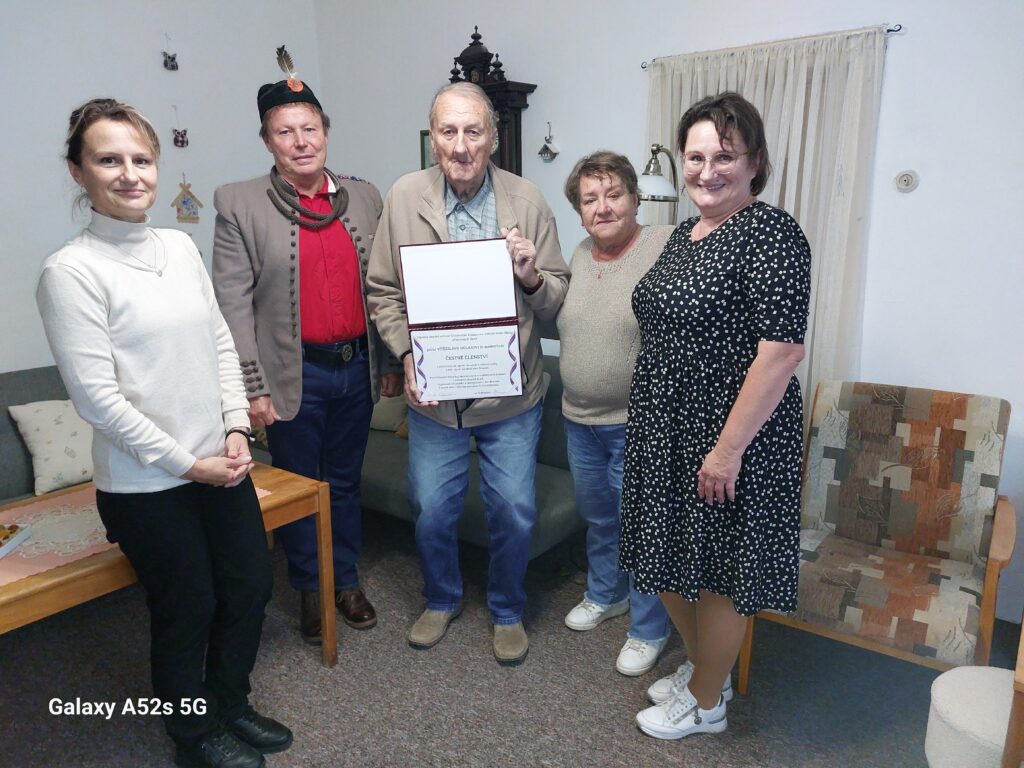 - Ve středu 8.října, v den kdy v celé republice probíhaly připomínky a pietní akce ke Dni Sokolstva, zástupci naší TJ Zdenka Horáčková (předsedkyně TJ) a Karel Horáček (člen TJ a navrhovatel tohoto ocenění) předali Čestné členství in memoriam, v rodném domě pana Vítězslava Holase, do rukou syna Milana a jeho manželky Zdenky za účasti vnuček Martiny a Michaely a synovce Petra, který se dostavil v sokolském kroji jež uchovává po svém strýci panu Vítezslavu Holasovi.